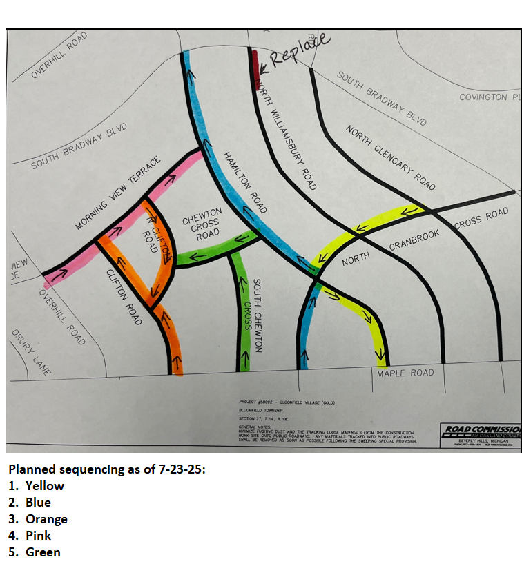 Doan will follow a new sequence for the remaining Gold sections streets as illustrated on the map below. The order will be (changes from 7/16/25 blog post in red):
